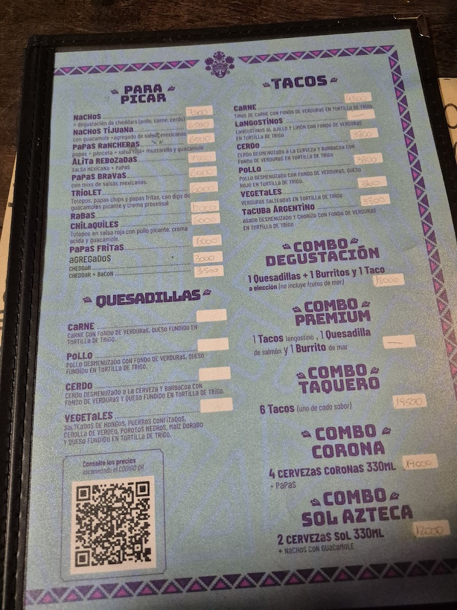 “ Muy buena atención de Maia la camarera. La comida es buena, los tragos son ricos y grandes. El combo de 6 tacos con papas es adecuado para 2 personas xq además de ser sabrosos, llenan. 5 estrellas. ”